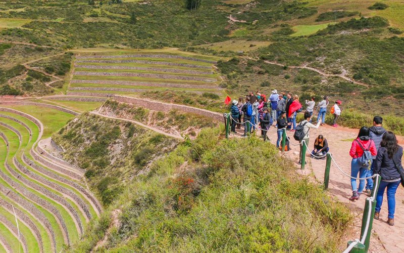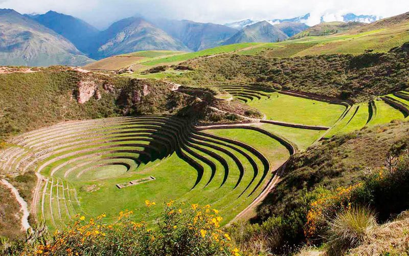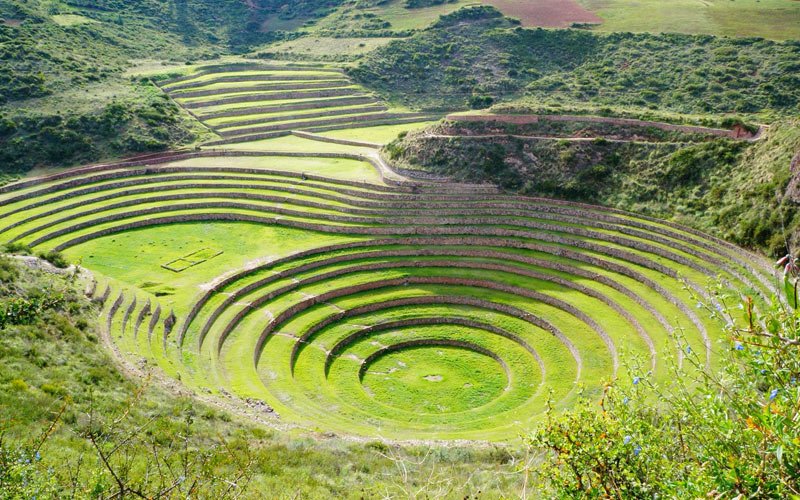 We will pick you up from your hotel around 8:00 a.m. and head to the farming laboratory in Moray. This beautiful drive is about one hour and 20 minutes. On your drive, you will see the snow-capped peaks of the Andes, lush yellow fields of wheat, and some villages. Finally, you will arrive at the fascinating display of terraces in Moray. Moray boasts three amphitheater-like terraces, made by the Incas. These terraces, which are carved deep into the earth, in the shape of a bowl, were thought to be used to determine the optimal conditions for growing crops.
